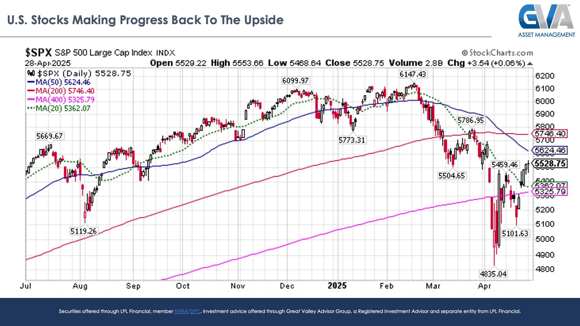 Investors have been in search of a new bull market with stocks careening to the downside for more than two months. The footprints of the new bull market were discovered more than a week ago when stocks showed no inclination to retest April 7 lows even with the executive branch threatening the independence of the U.S. Federal Reserve. The new bull was perceived in the days that followed as the S&P 500 broke decisively above its short-term 20-day moving average for the first time since its mid-February highs. And as we enter the new trading week, investors are well served to catch the bull as it charges to its next high plateau potentially beyond new all-time highs.