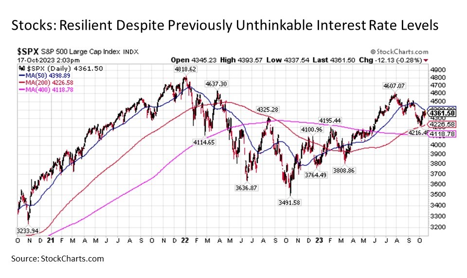 In short, despite all of the challenges currently pressuring stock prices, it is worthwhile to consider how well U.S. stocks have held up over the last couple of years in what were previously unthinkable market conditions as recently as a couple of years ago. Despite all of the threats, stocks are still within striking distance of new all-time highs.