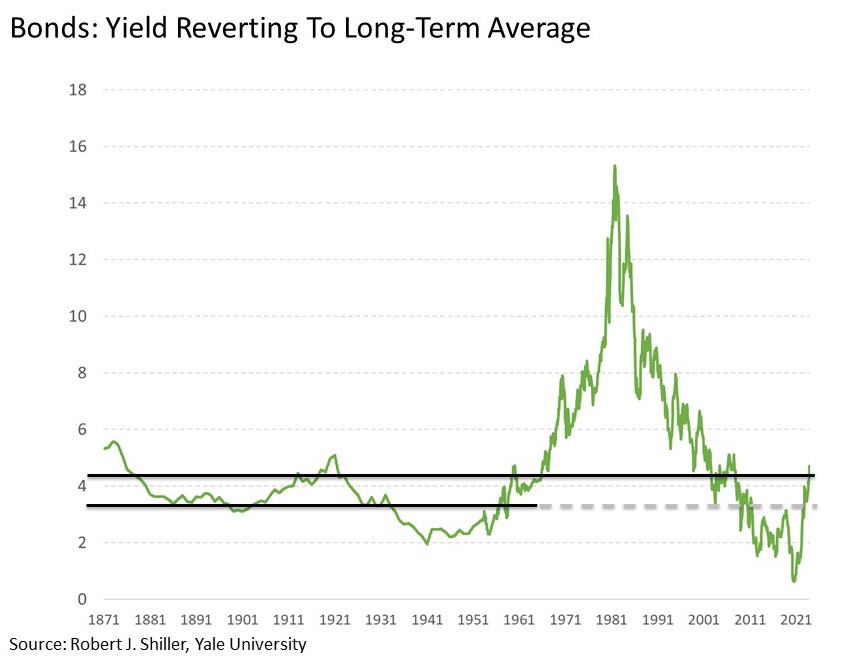While the 10-Year U.S. Treasury yield pushing north of 5% seems unimaginable but recent standards, it is important to put today’s rates into historical context. While the move in Treasuries has been sharp over such a short period of time, the net result has been yields essentially reverting back to their 150-year long-term average at 4.5%. Moreover, what was more of the outlier is the fact that Treasury yields were so low for such a prolonged period in the 2010s and early 2020s, not that they are as high as they are today.