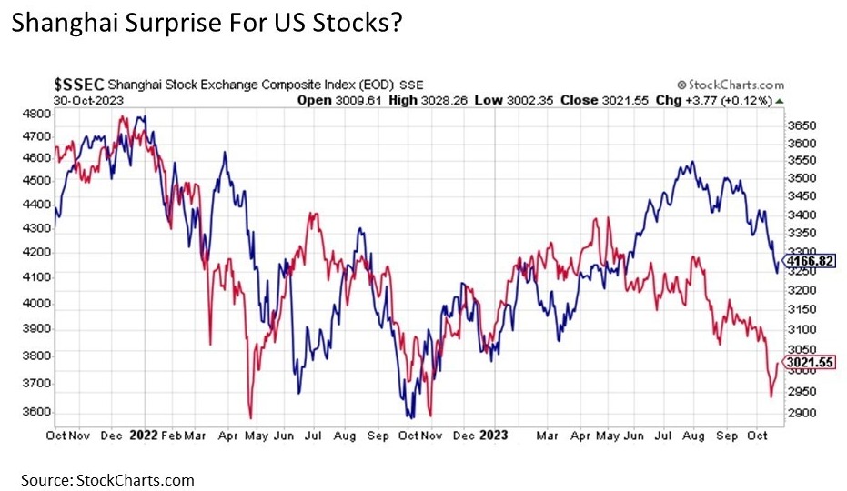 What is notable is that U.S. stocks as measured by the headline benchmark S&P 500 were also following a similar path from late 2021 up until June of this year until suddenly U.S. stocks broke off to the upside as China stocks rolled back over to the downside. Given the gap that now exists between the recent performance of the S&P 500 and the Shanghai Stock Exchange Composite Index coupled with the pace of the recent U.S. stock market decline, it is reasonable to worry that the S&P 500 may ultimately fall down to the price currently implied by the Shanghai index at around 3750.